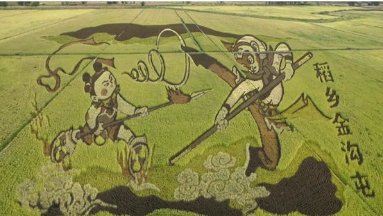 活动最后,与会领导一起观看了《千人稻田舞翩跹》、《孙悟空大战哪吒稻田画》。
