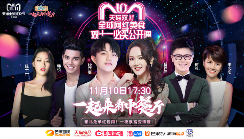 天猫食品携手芒果互娱、淘宝直播共同打造首档台网联动栏目《一起来看中餐厅》收官夜,本期直播节目将于今天(11月10日)17:30盛大开启,打造全球网红美食双十一必买公开课!