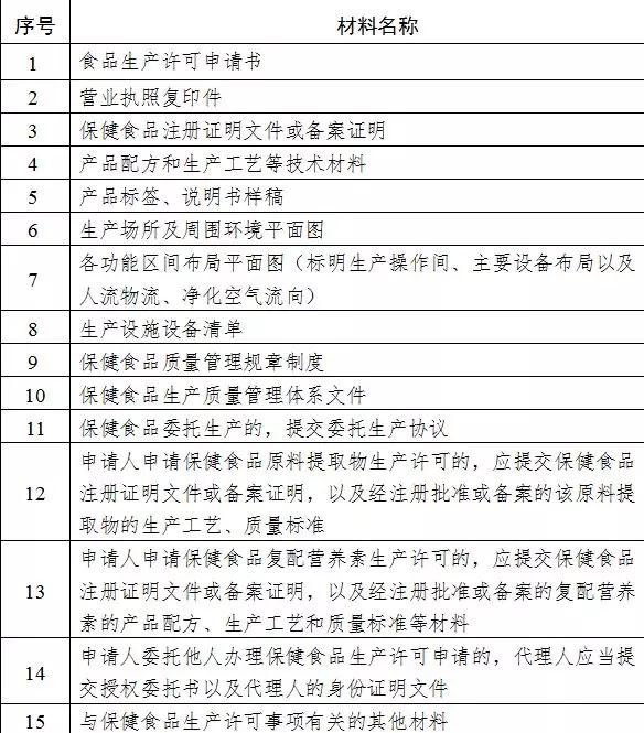 根据《保健食品生产许可审查细则》的规定,保健食品生产许可申请人应当是取得《营业执照》的合法主体,符合《食品生产许可管理办法》要求的条件,填报《食品生产许可申请书》,向其所在地省级食品药品监督管理部门提交下列申请材料: