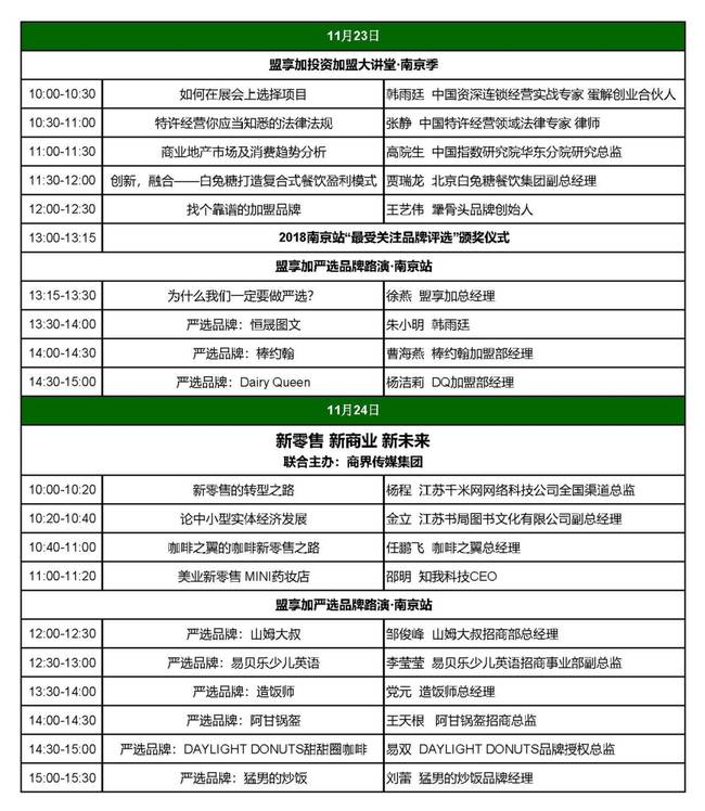 此次是盟享加中国特许加盟展是首次在南京办展,作为承接2018和2019年的关键一站,南京站将聚焦“未来经济”和“品质生活”两大主题。