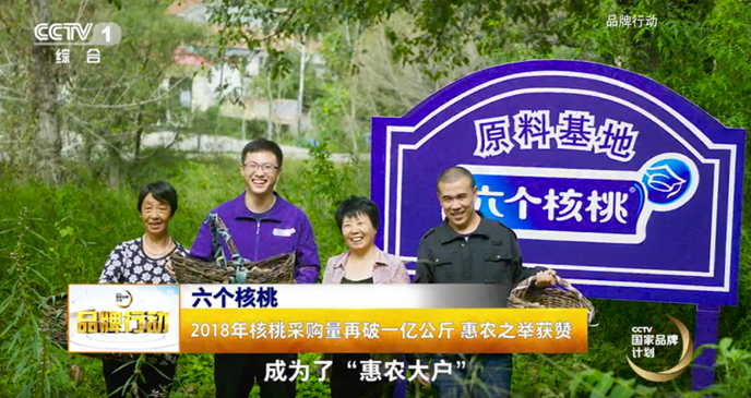六个核桃作为国内植物蛋白饮品领军品牌,积极践行国家政策,以“带动三农经济发展,助力国家经济结构改革、承担社会责任”为己任,2018年在新疆、云南、太行山“三大核桃黄金产区”的核桃采购量再次超过一亿公斤,在保障六个核桃优质原料的同时,也带动了当地经济的发展,帮助核桃种植户脱贫致富,获国家级媒体央视点赞。
