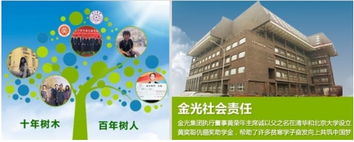 黄荣年主席除了特别重视生产及食品安全是永续经营的生命,更饮水思源积极推动社会回馈计划,尤其聚焦关注中国教育事业的发展及高端优秀人才的培养——自2007年起诚以父之名在清华和北京大学设立“黄奕聪伉俪奖助学金”,多年来一直不遗余力帮助了许多积极努力的贫寒学子,激励他们奋发向上共筑中国梦,目前已成为北京大学受惠人数最多、覆盖区域最广、累计金额最高的奖助学金项目。