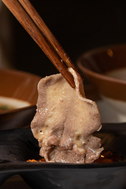 入口时,烤牛舌的爽脆与细腻矛盾的口感同时在咀嚼中展现, 鲜美的肉汁锁在味蕾上,让人直呼过瘾。