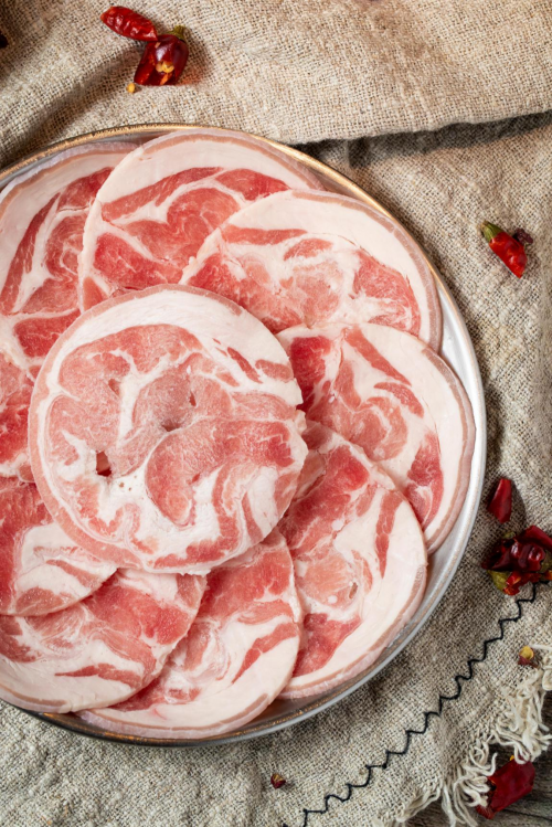 切口清晰明了的加拿大薄切肥牛,晶莹剔透,秀色可餐。