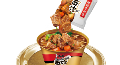 随后各大品牌不断推陈出新,力争科技创新争占市场:面条非油炸蒸煮面工艺、低脂低卡路里、熬制高汤、肉包锁鲜等等技术相继面世。下面以康师傅最新推出的营养膳食新品类康师傅速达面馆为例,分析一下科技创新推动方便面行业的发展。