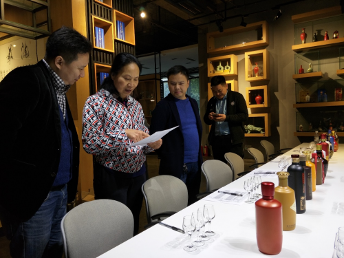 (图七:左一,淘最美酒总经理郭晓霜先生;左二,前茅台副总工彭英女点评青云盲品活动)