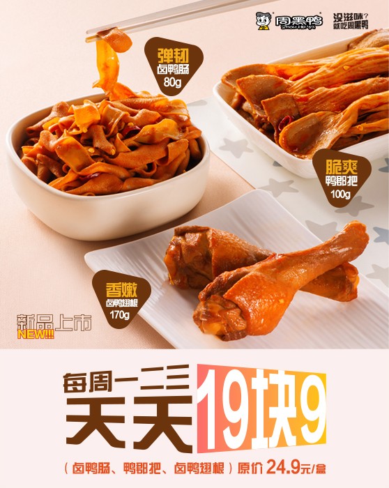 除了这些搭配吃法外,周黑鸭还可以搭着很多食物一起吃,真真是个百搭郎君,现在周黑鸭的王牌产品-甜辣鸭锁骨也有限时优惠活动,只需要9块9就可以带回家,让你的生活更有滋味!大家还不快快冲鸭!
