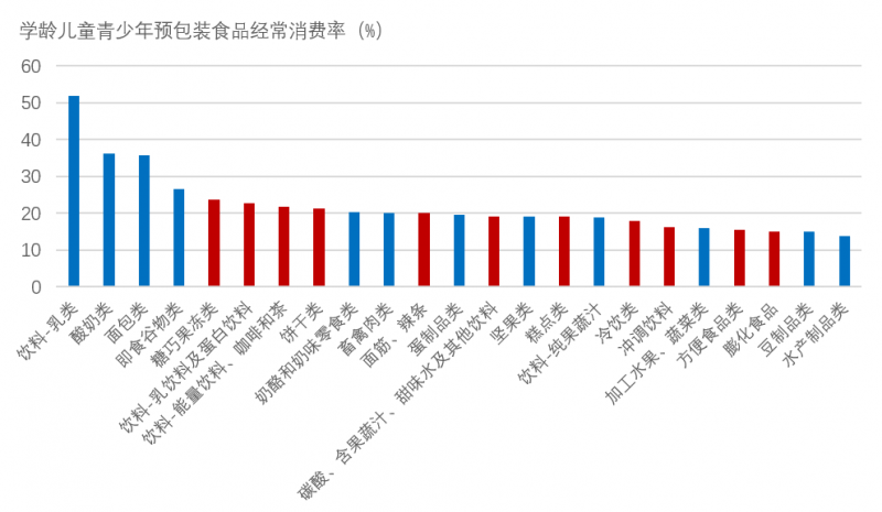 图1. 学龄儿童青少年预包装食品经常消费率排序
