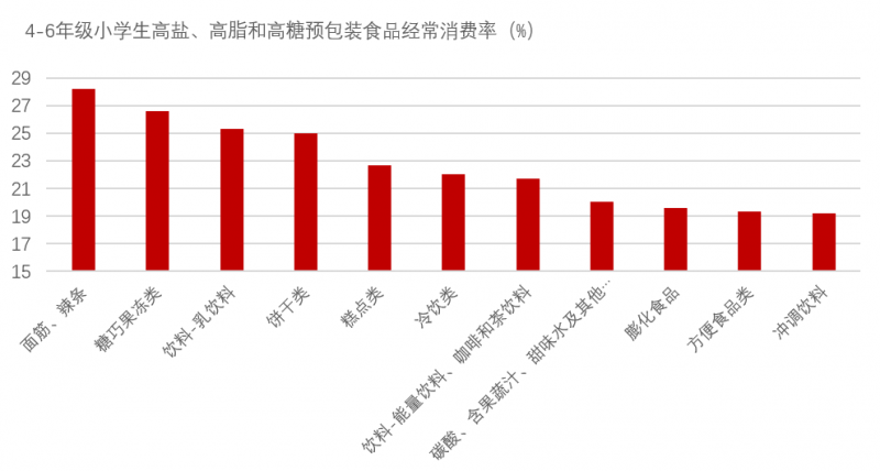 4-6年级小学生面筋辣条类预包装食品经常消费率较高