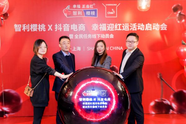 2021年12月28日,智利樱桃与抖音电商在沪举行了幸福迎红运活动启动会暨全民任务线下动员会。活动当晚气氛热火朝天,大家共襄盛举,舞出幸福红运。