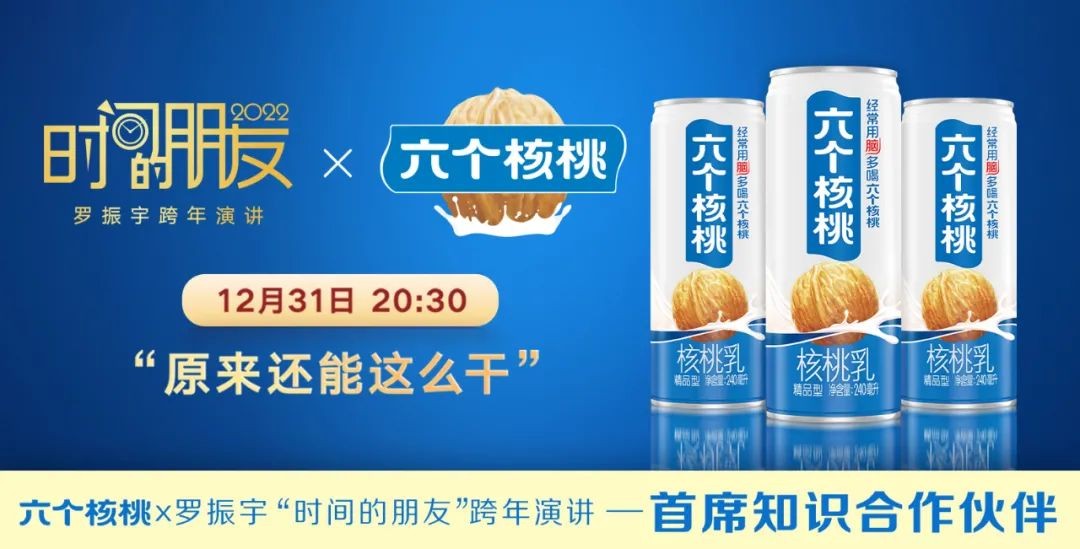 源于“把一件简单的事情重复做,时间会给我们回报”的共同认知,2021年12月31日,养元六个核桃再度携手“时间的朋友”智慧跨年,诠释“原来还能这么干”的深层含义。面对今年的云直播挑战,立志要连续举办20年的罗振宇“时间的朋友”跨年演讲如约而至,一如养元六个核桃长期以来的坚持与突破。