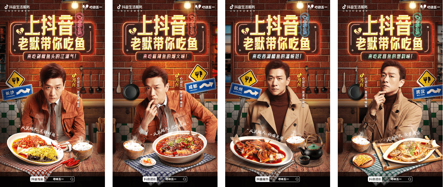 #没想到老默也是懂吃鱼的 话题迅速登上抖音站内热点,更是实现了端内端外的传播热敏效应: 资深剧粉跟进二创,多位达人同款探店、端外KOC联动话题......在「寻味五一」预热阶段,通过与国民爆款剧集《狂飙》中“老默”的深度合作,抖音生活服务将“城市特色鱼”与“角色吃鱼梗”巧妙融合,一方面立竿见影地唤醒全网“吃鱼”DNA,调动起五一出行“去哪吃、吃什么、怎么吃更好”的天然讨论热度; 另一方面借助“老默”的内行专家形象,强化商家优品属性,将“地道”与“烟火味”两大价值信息点深植用户认知,提前打通商家与用户的双向链接。