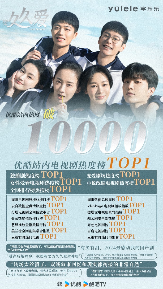 近日,青春励志剧《要久久爱》开播,上线9天,累计有效播放量破4亿。一方面,“抗剧女王”杨紫、新生代演员范丞丞、实力派演员金世佳、国家一级演员句号、老戏骨赵淑娟的加盟,让画风十分有趣吸睛;另一方面,青春励志加上现代职场的多维度题材、过去与现在的双线叙事,以及细腻的情感表达,更能引发观众深度共鸣,后续热度定将持续升高。
