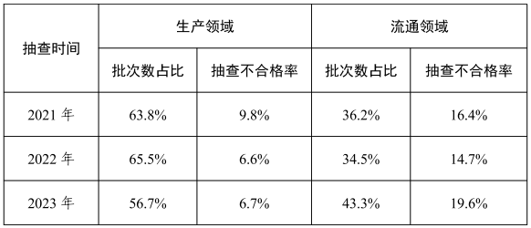 表1 近三年生产流通领域抽查不合格率分布情况表