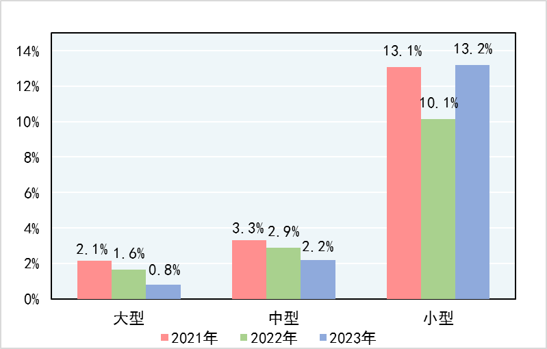 图2 近三年大中小型企业产品国家监督抽查不合格率对比图