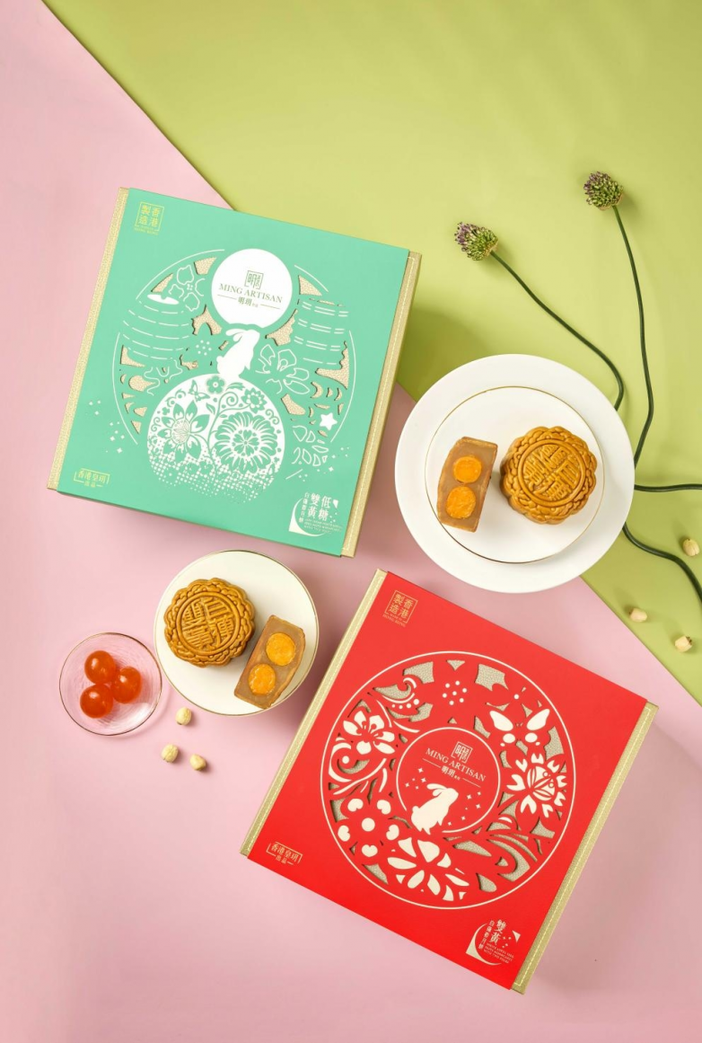 (3)低糖双黄白莲蓉月饼:挑选来自湖南的寸三莲,莲蓉清香幼滑,搭配两颗顶级咸蛋黄,兼具健康与传统滋味。