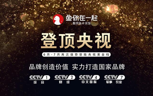 据记者了解,在秉承品牌优势的情况下,自2018年6月起,“鱼你在一起”酸菜鱼@米饭将再次迎来品牌升级巅峰,再次问鼎央视,并以15秒品牌广告陆续登陆CCTV-1、CCTV-2、CCTV-4、CCTV-7等四大重磅频道的黄金档,进行持续轮番轰炸连播,再次用实力打造酸菜鱼快餐品牌!