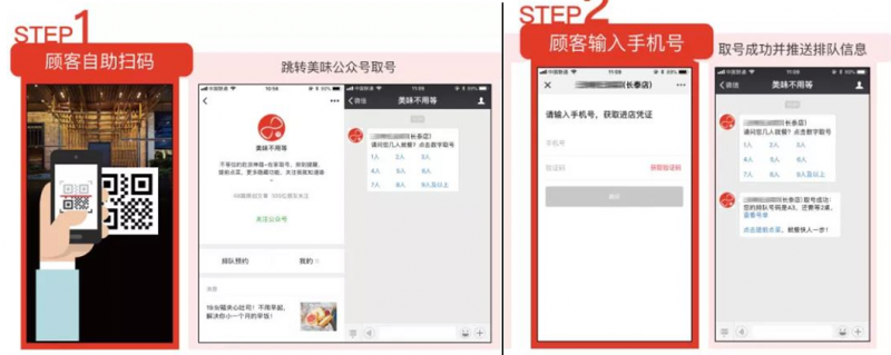 针对排队流失高这个老大难,赤宴接入美味智慧餐厅排队版扫码取号功能,无需专人引导,即可让顾客自助取号排队,实时查看排队进程,防止过号流失。顾客在取号时需要输入手机号,商户同时也完成了客户信息的收集,方便进行会员营销和管理。
