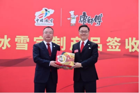 国家体育总局用力运动管理中心常务副主任丁东在签收仪式现场表示与康师傅的合作是缘起平昌。很多运动员在海外受训时,都面临着当地食物不合口味,想念家乡美食的问题。此次携手康师傅推出的中国冰雪国家队定制产品将会成为真正解决这一难题的武器。