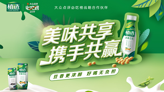 餐饮作为最高频的消费场景之一,是大众饮品拓展生意的“必争之地”。19年初,植选豆乳着手布局餐饮市场,从推出即饮装到打造魔性吃喝视频,不断强化佐餐的饮用场景。此次牵手大众点评必吃榜这一美食类王牌IP,更是彰显其攻占吃喝场景、强化品牌占位的野心。