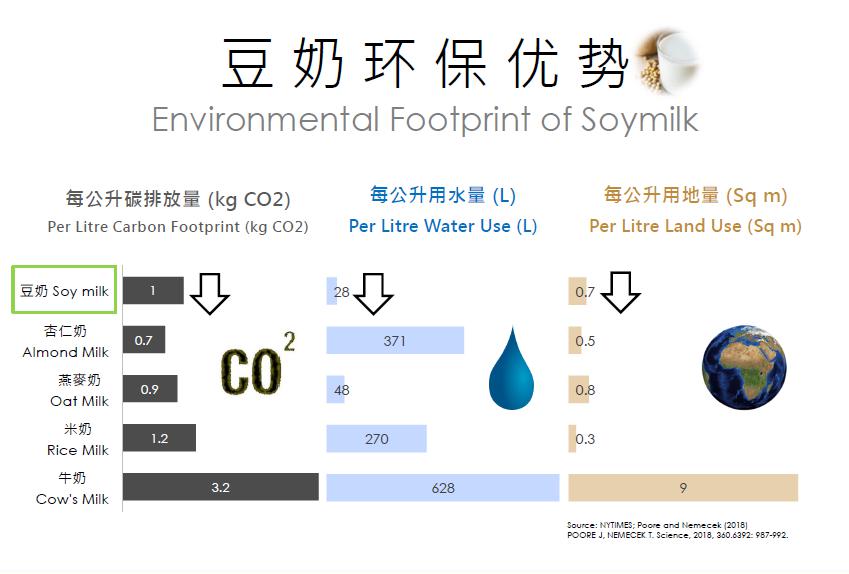 在环境保护方面,有研究显示,植物性饮食有助于降低60%与食物有关的温室气体。在用水量上,相较于牛奶、杏仁奶等,豆奶用水量最低,其环保性更符合可持续发展要求。