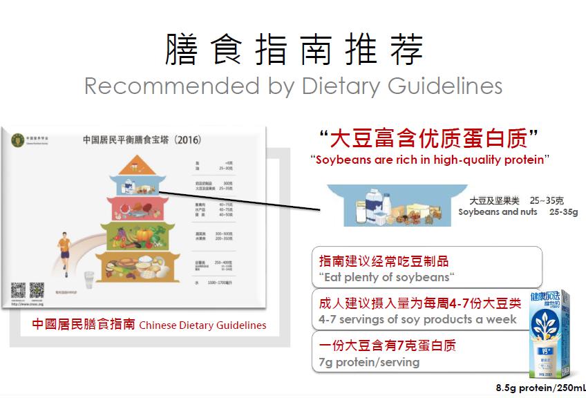 据维他奶的注册营养师在本次学术会议上分享的“大豆营养及健康”的国际前沿研究成果表明,与其它植物相比,大豆蛋白为优质的植物蛋白,能提供必需氨基酸,有助于肌肉生长及恢复。研究显示每天从1-2份大豆食品摄取25-50毫克可为健康带来益处。同时,强化豆奶可作为丰富的优质蛋白质及钙质来源,而且不含胆固醇及乳糖,更适合患有乳糖不耐及关注心脏健康的人士饮用。现时中国、美国、澳大利亚等多个国家的膳食指南均将大豆及其制品(包括豆奶)作为优质营养的食材来源,鼓励适量摄入。