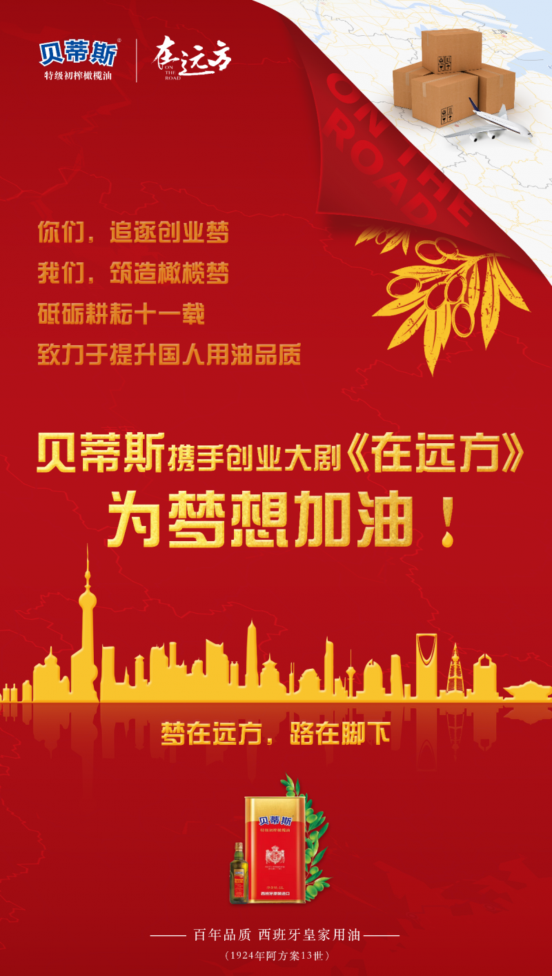 据悉,此次贝蒂斯橄榄油携手《在远方》,正是源于助力美好生活,为奋斗者加油的共同理念,向创业者发出致敬之声。在远方,二十载奔波辛劳,只为对事业和梦想的追求不断提升;贝蒂斯,十年如一日的执着,只因提供健康用油的决心从未改变。
