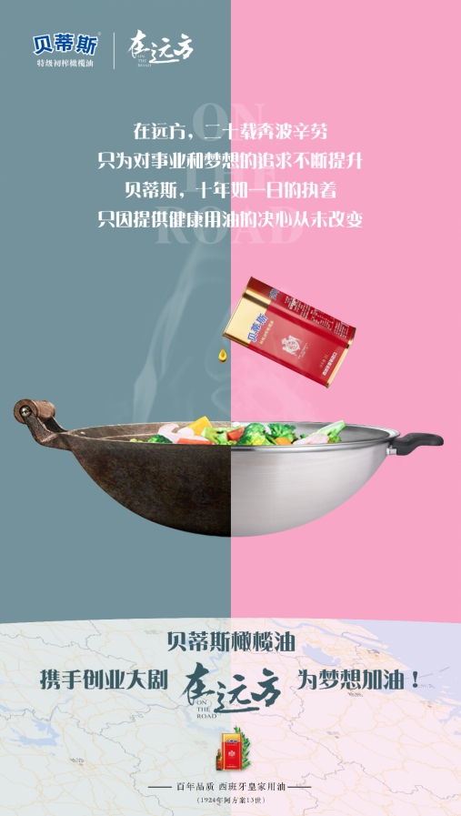 自2009年进入中国以来,有百年历史的贝蒂斯始终坚持以严苛的品质要求自己,凭借优质的品质和强大的产品竞争力,迅速打开国内健康用油市场,用实力征服中国消费者,持续为国人提供健康、营养、高品质的用油。可谓是:在远方,二十载奔波辛劳,只为对事业和梦想的追求不断提升;贝蒂斯,十年如一日的执着,只因提供健康用油的决心从未改变。