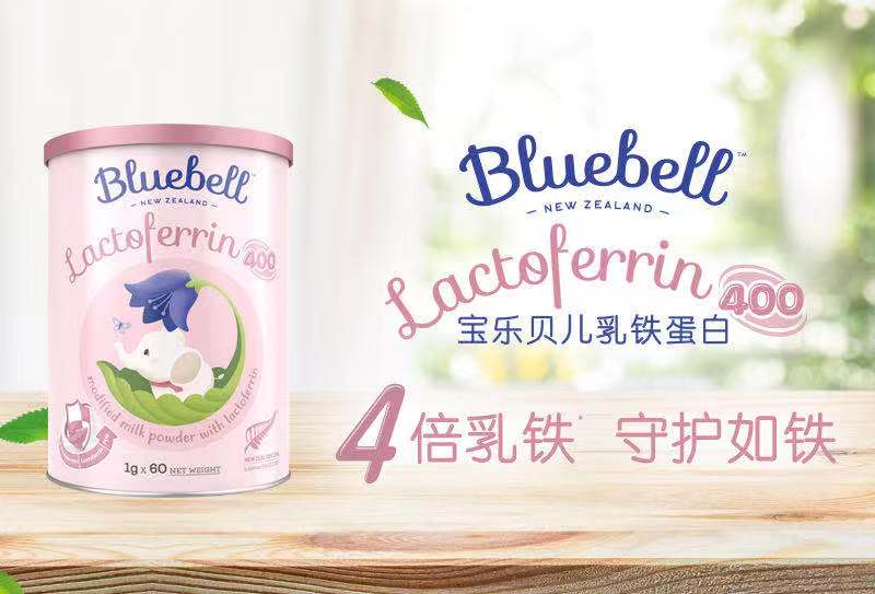 为宝宝选购乳铁蛋白补充剂首先最应该关注的就是乳铁蛋白含量。目前市场上大多数奶粉的乳铁蛋白添加量一般都不会超过100mg/100g, Bluebell宝乐贝儿乳铁蛋白调制乳粉添加了高达400mg/100 g的乳铁蛋白,提供了爆表的免疫保护力,努力延续母爱的强劲呵护,可谓是乳铁蛋白补充剂中的“含量担当”!除了高含量,Bluebell宝乐贝儿所含的乳铁蛋白纯度达到了95%以上。