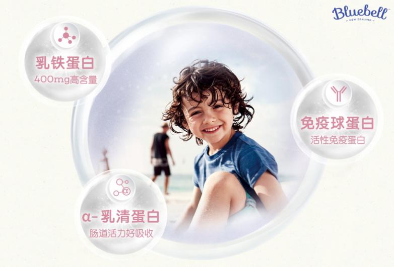 α-乳白蛋白、乳铁蛋白和免疫球蛋白这三种免疫蛋白,它们在母乳中共同筑起了牢固的免疫防线,为宝宝的健康保驾护航。Bluebell宝乐贝儿乳铁蛋白调制乳粉就“一网打尽”了三种珍稀蛋白。[4]