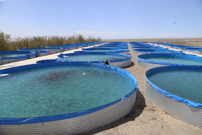 兵团十二师221团位于吐鲁番盆地,北起博格达山、南至艾丁湖,夏季极端高温达48.6℃,年均降水量7.9mm,年蒸发量2914mm,冬季降雪极少,素有“火洲”、“风库”之称,就在这样一个地区,新疆兵团大河泉冷水鱼有限公司建立起了虹鳟鱼养殖基地。该基地采用“一水两用”模式进行生产,水源为天山雪水,经测定,水源清新透明优良、水质非常适宜虹鳟鱼养殖,养殖场将灌溉用水引入,经渔业养殖使用后,通过沉淀、曝气、生物净化等方式,将水还回灌溉渠道,在不增加用水指标的前提下,额外增加产值。