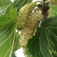 果桑修剪重要性。对于一些高产的品种,通过修剪枝条,控制产量,打通光照,通风透光,提升桑葚品质,增加果桑树抗病性。每年新枝条结果,果个更大,更饱满。修剪时间在春天发芽以前和桑葚采摘结束后。春天修剪,过密的枝条剪去,通风透光,夏季修剪,修剪枝条数量不易太多,不要超过总枝条数量的二分之一。桑葚采摘结束后,马上进行修剪,培养明年的结果枝条。留下细枝条,剪去结果后过粗的枝条,剪得时候基部留下一到两个芽,重新培养结果枝条。