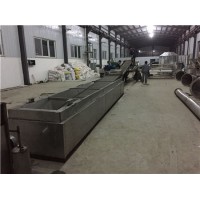 三、蒸汽链条锅粉条机是汝阳县古城机械厂续半自动仿手工粉条机研发的粉条生产线,该套设备由打芡机、螺旋自动上料机、双蛟龙联合和面机、不锈钢抽真空机、旋叶震动下瓢机、不锈钢气锅、传输冷却带、晾粉传输带、自动切条拨条机、联合式和面机工作台等组成,该套设备产能大,成品次品率低适合中大型企业常年生产,设备产能每小时2000-3000斤两种配置,本套设备适合中型企业应用,气锅加热需锅炉供热,锅炉配置较高,生产时适合连续性作业,成品外观透明整齐,粗细均匀,产能大,但由于添加抽空机口感过于生硬,抽空粉市场限制,可根据当地情况和生产需要配置,其中配备的抽空机也可以用揉面机代替,产能达不到所需标准,但客户要求这样配置更多一些。